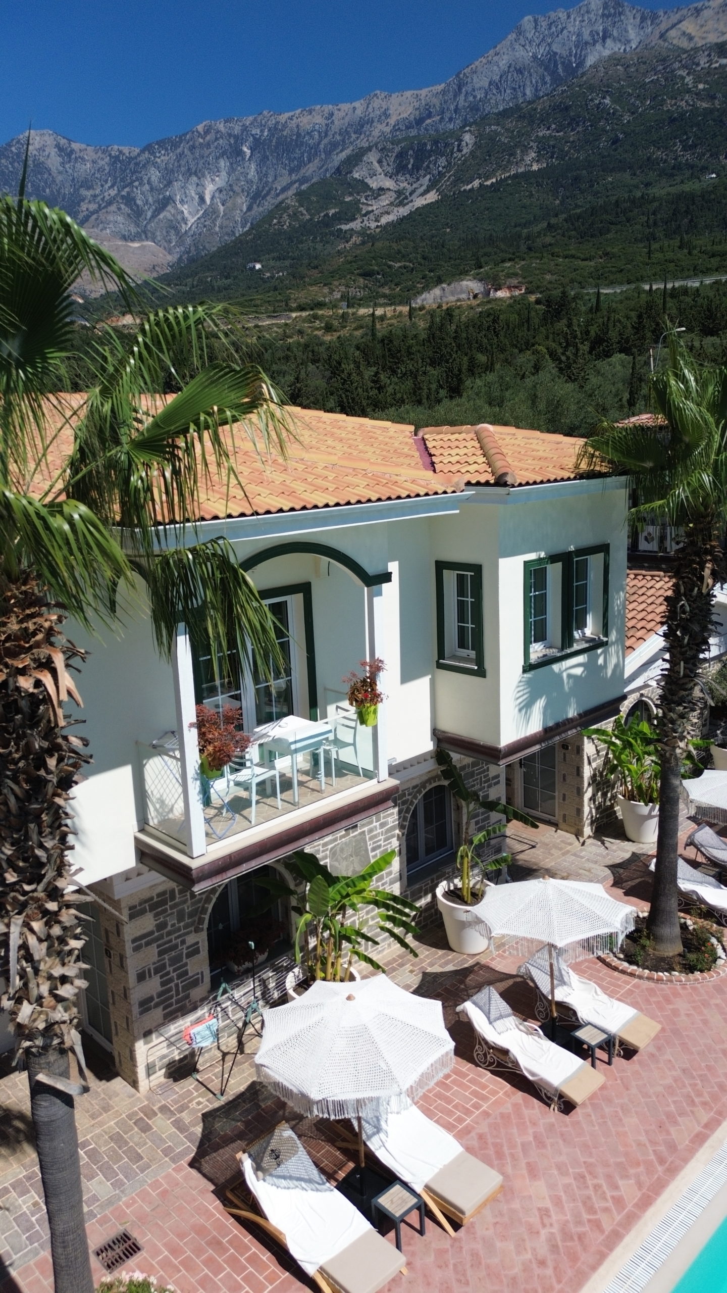 Explore the gallery of Sarajet e Pashait and discover our elegant rooms, outdoor pool, restaurant, and beautiful surroundings in Dhërmi.